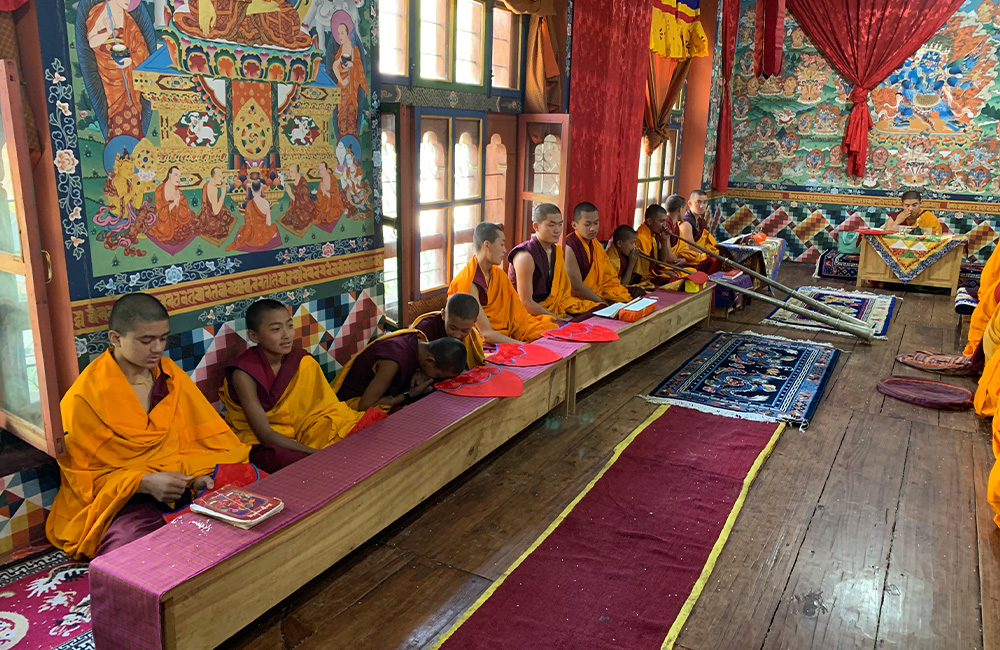 After our visit to the monastery, we descend on the same route, keeping our eyes open for the goral and gray langurs that are often spotted on the hillside nearby. Back at the village of Dodena, we drive to Chebesa, home of the Choki School of Arts. The school provides free, skill related education in the traditional arts and crafts of Bhutan to those youths who are unable to continue their formal education.