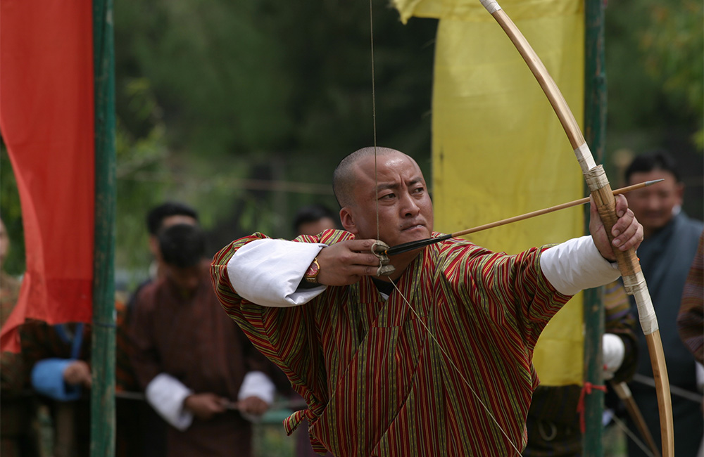 Next visit the Royal Textile Museum showcasing the finest Bhutanese textiles and you can also watch the weavers at their looms. Located next to the Museum is a single line of small bamboo huts selling traditional authentic made in Bhutan art and craft items.