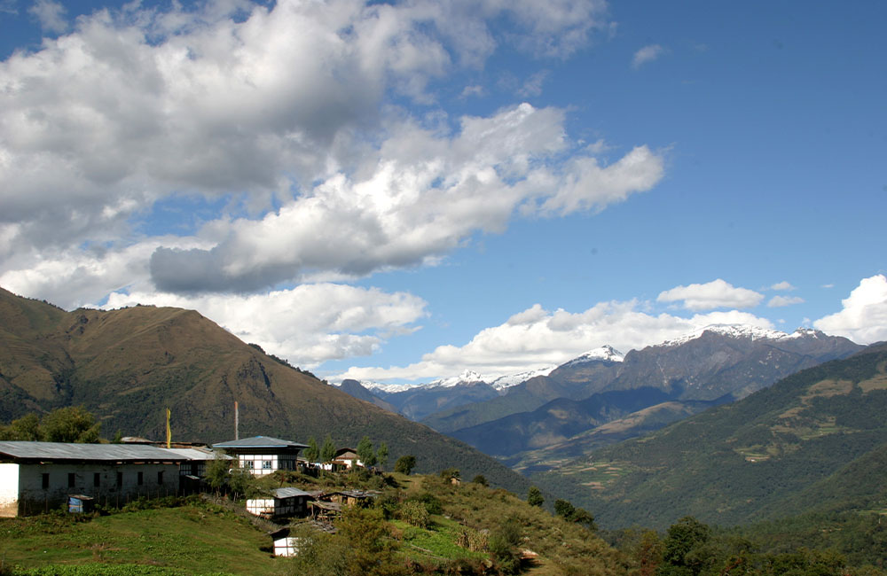 We start our day with a leisurely walk down to Menjabi (sometimes spelt Minjibi) village, where beautiful houses and terraced fields are scattered across the gently sloping hillsides. Legend says that in the olden days many beautiful ladies could be found in Menjabi, but that outsiders did not marry them for fear of the leprosy which was prevalent in the area at that time (but is no longer, due to modern treatment methods). After passing Menjabi we have a short climb up to Tage-la (1,760m). From here the journey is all downhill till we reach Tangmachu village (2,200m), situated just above a major rice growing area. There is a big secondary school here. In autumn, we can camp in the fields, but if we are passing through during the cultivation season, we will carry on down the hill and camp by the side of the Kuri chu (2,000m).