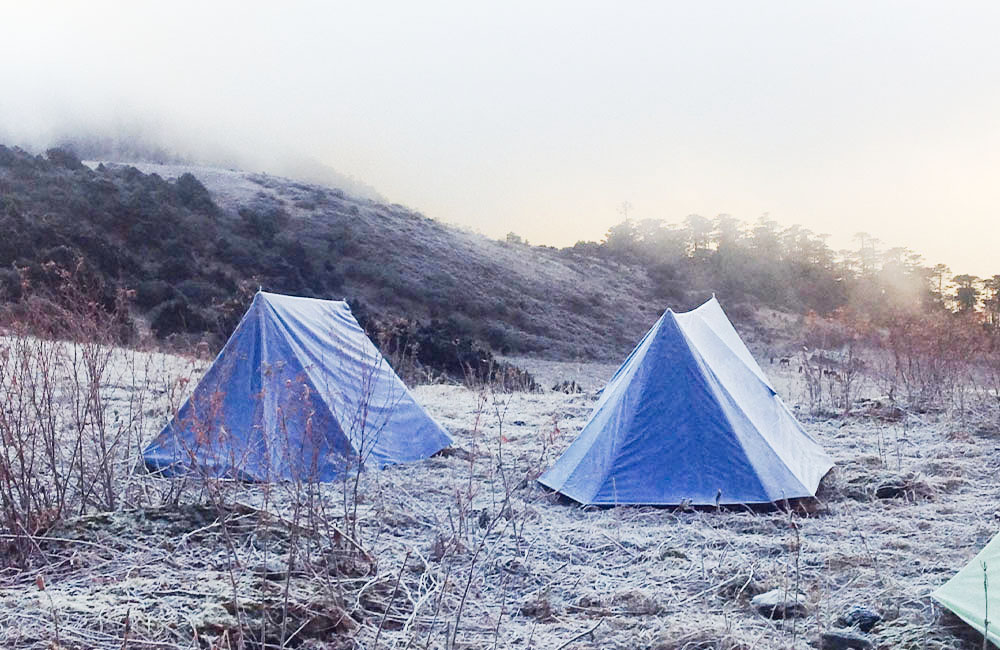 Continue up to Dong-la (3,900m) and pause at the pass to enjoy a splendid view of the surrounding snowy peaks. Then descend through thick evergreen forest to reach our camp site at Taupang (2,450m), a forest clearing with a wooden shelter in it.